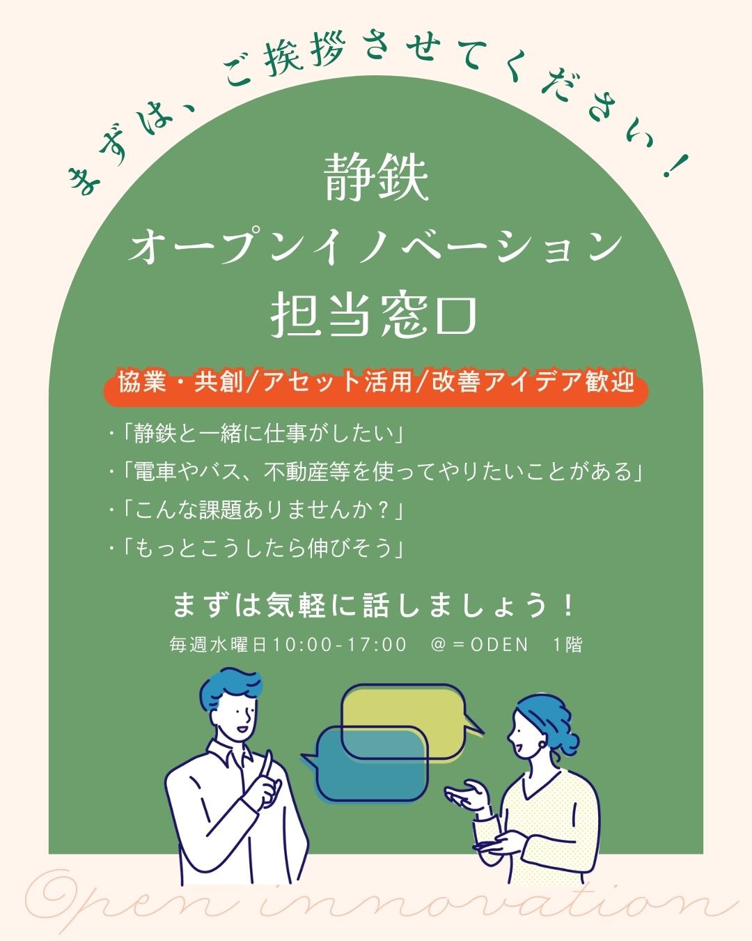 =ODENでは、様々なスキル、個性などをも持った人たちが集い、そしてお互いに刺激し合いながら新たな可能性や、出会いを生み出せるばを目指しています。
