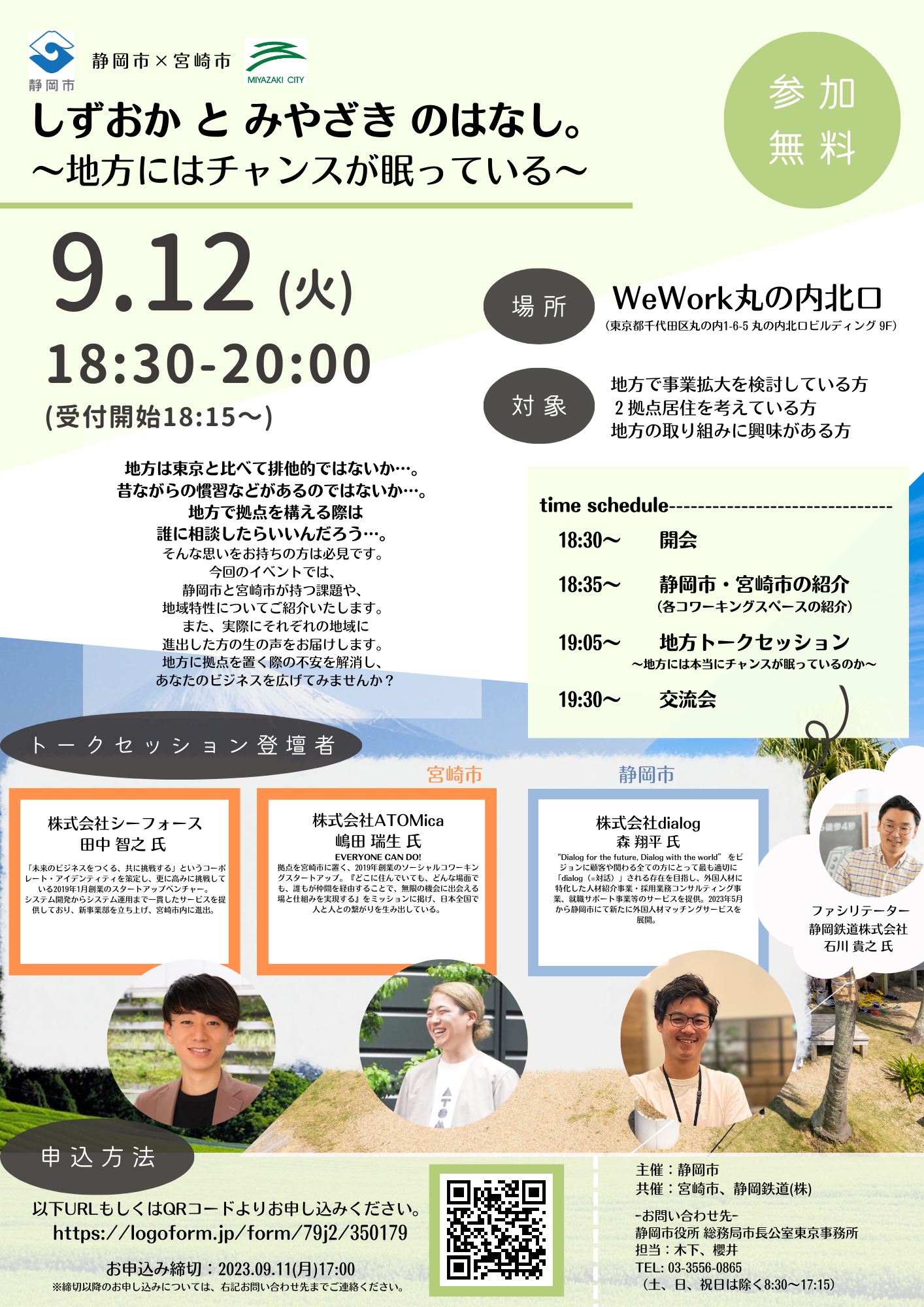 【ご案内】9/12(火)18:30~wework丸の内北口にて「しずおかとみやざきのはなし。」開催いたします!