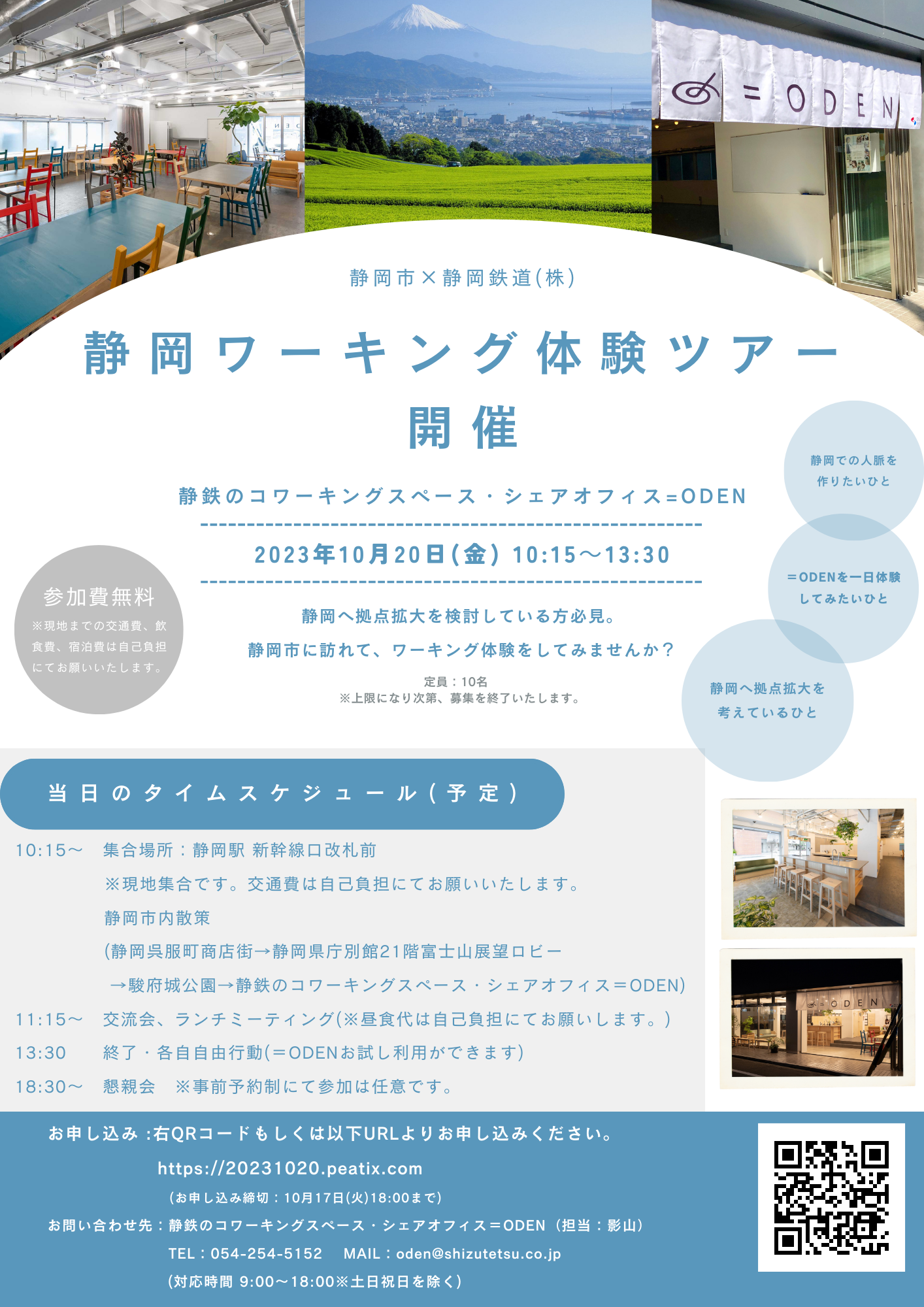 ・問い合わせ先:静鉄のコワーキングスペース・シェアオフィス=ODEN(担当:影山)