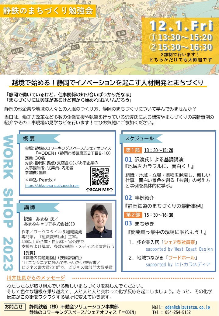 12/1(金)開催【静鉄のまちづくり勉強会】越境で始める!静岡でイノベーションを起こす人材開発とまちづくり