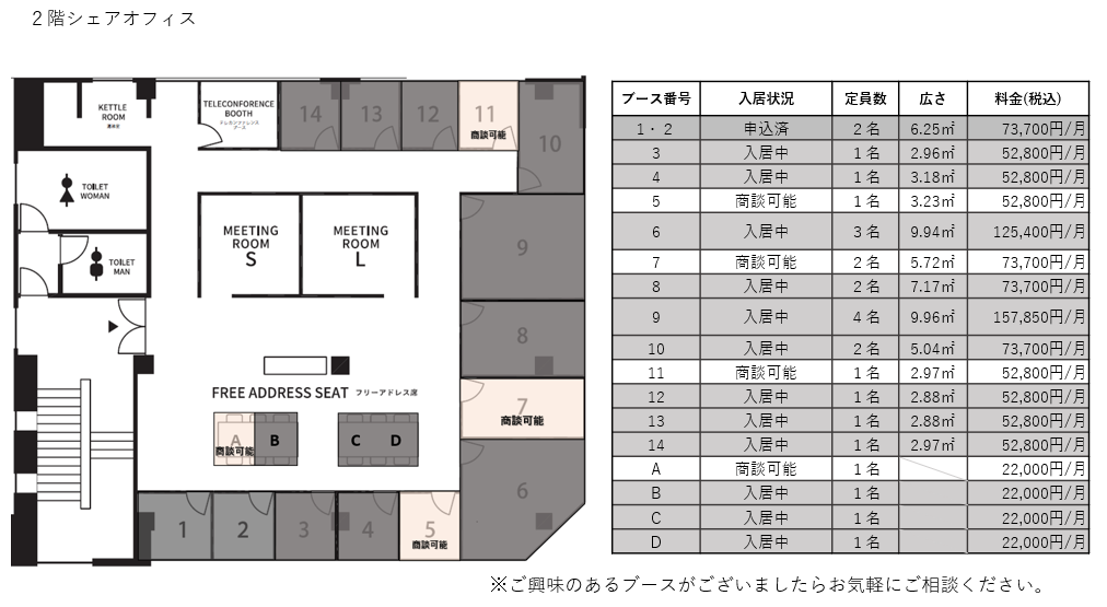 2階シェアオフィス空室のご案内(2024/6/1現在)