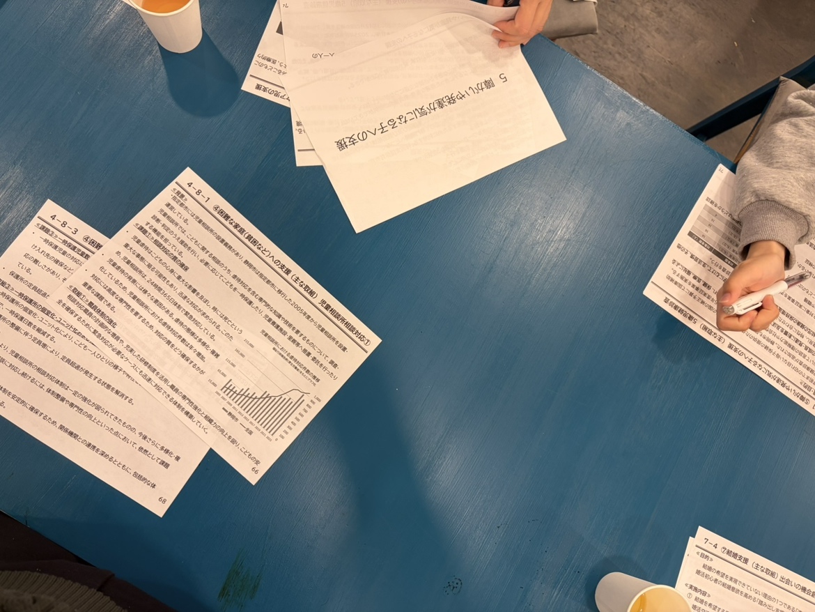 およそ100ページの資料を参加者18人で手分けして輪読し、23分ほどで発表しました。現状分析から課題の捕捉、支援の在り方まで、多方面から論じられた市政の方針を参加者皆で少しづつ読み解くことで、人口減少が続く静岡市の姿勢について、関心を寄せて確認することができました。